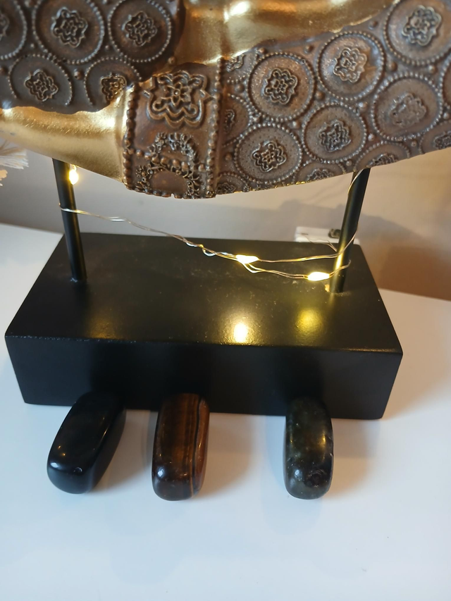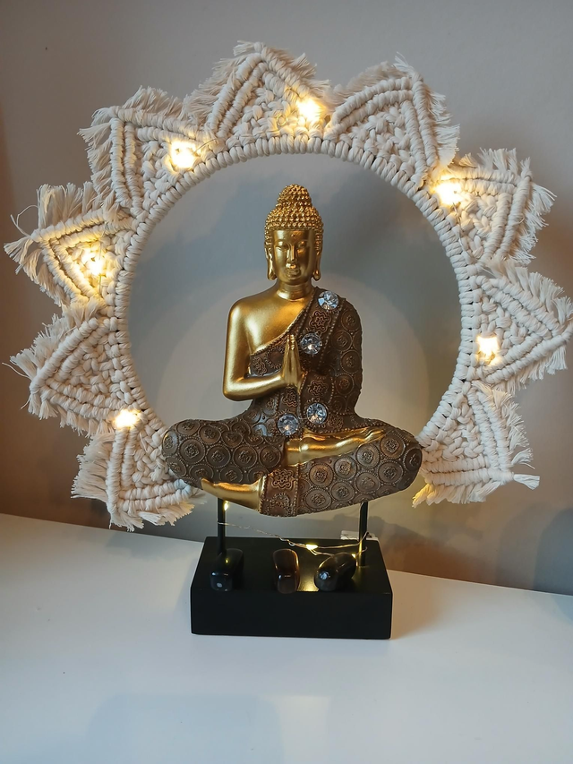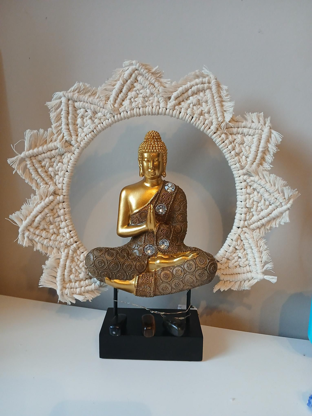 Bouddha macramé protection, labradorite, œil de tigre, obsidienne flocon neige